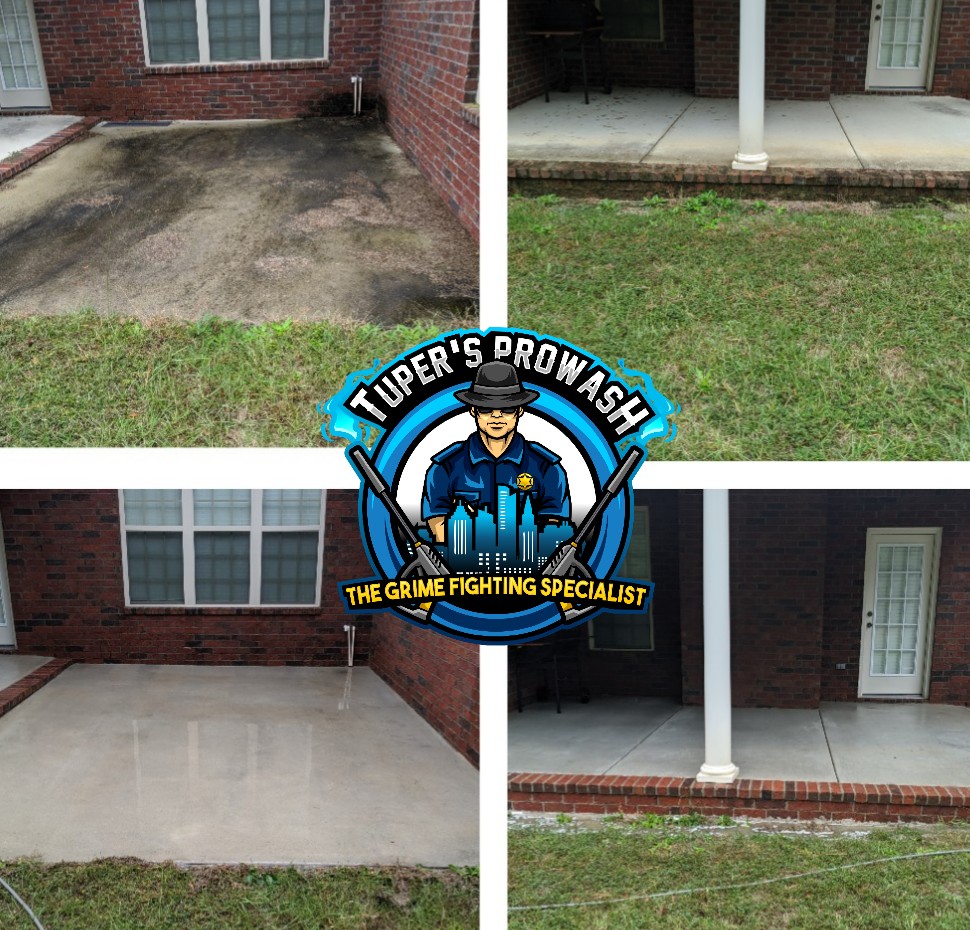 Surface cleaning is normally done using a surface cleaner hooked up to a pressure washer. It disperses water pressure evenly using a rotating wand to clean large surface areas. This ensures that the surface comes clean properly without etching it. This process brings your surface back to that "like new look" as well as prevents dangerous slip hazards.